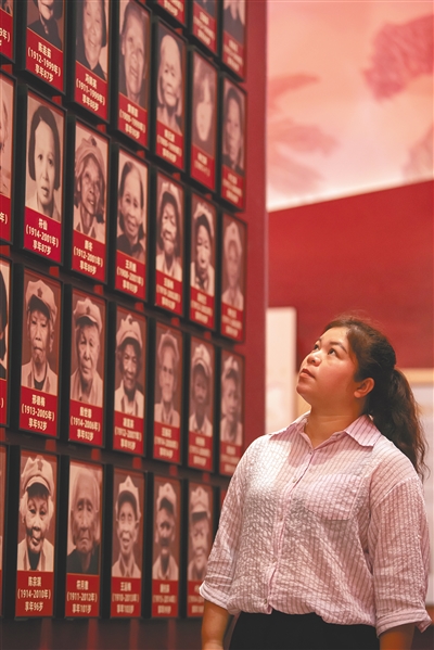 前不久,蔡惠莉带着女儿到红色娘子军纪念园参加活动。女儿在展板上看到“陈进容”三个字,就拽住妈妈的衣角说:“妈妈,快看,这是你阿豆(海南方言,意为曾祖母)!”她让蔡惠莉拿出手机,站在展板前,一起拍了合影。“我要拿回家给爷爷看!”孩子的声音里充满自豪。那一刻,蔡惠莉看着女儿骄傲的脸庞,她知道红色娘子军的名字和故事,正在女儿心里生根发芽。
