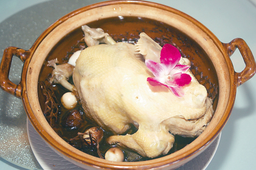 | 亚龙湾五号度假酒店的海南官府菜招牌菜———猪手神仙肥鸡。 本报记者 李英挺 摄 |