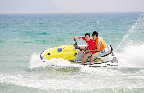| 游客在摩托艇上尽情体验动感三亚。 本报记者 张杰 摄 |
