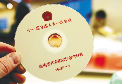 为方便报道两会的记者,海南代表团准备了“十一届全国人大一次会议海南省代表团宣传参考资料”的数据光盘。