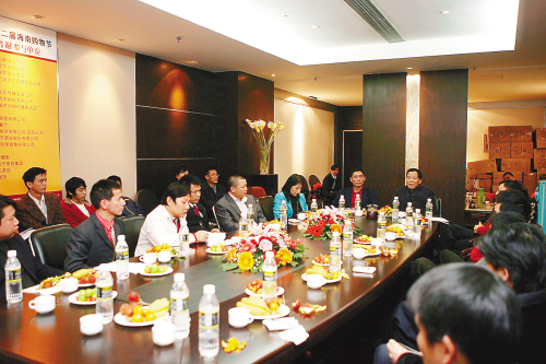 | 第二届海南购物节闭幕及抽奖仪式二月二十九日下午在海南日报社举行。图为各商家为“购物节”的未来建言献策。