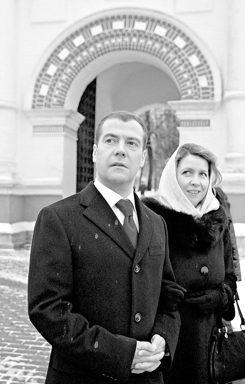 | 这是2008年3月2日,梅德韦杰夫与夫人斯维特兰娜在莫斯科的合影。