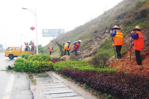 近日,琼海市公路工人在长达12公里的博鳌中远路上植树种花草,绿化美化环境,迎接2008年博鳌亚洲论坛年会的召开。 特约记者 蒙钟德 摄