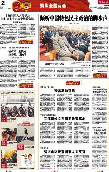 海南日报 聚焦全国两会 002 2008-03-041 2008年03月04日 星期二