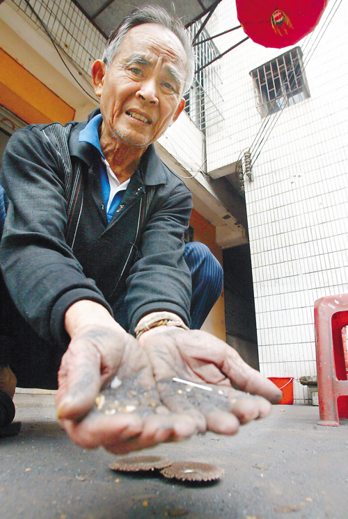 | “这就是加工点飘过来的粉尘。”黄老伯对记者说。