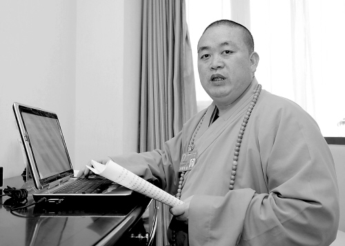 | 来自河南的全国人大代表、少林寺方丈释永信。 新华社记者 朱祥 摄 |