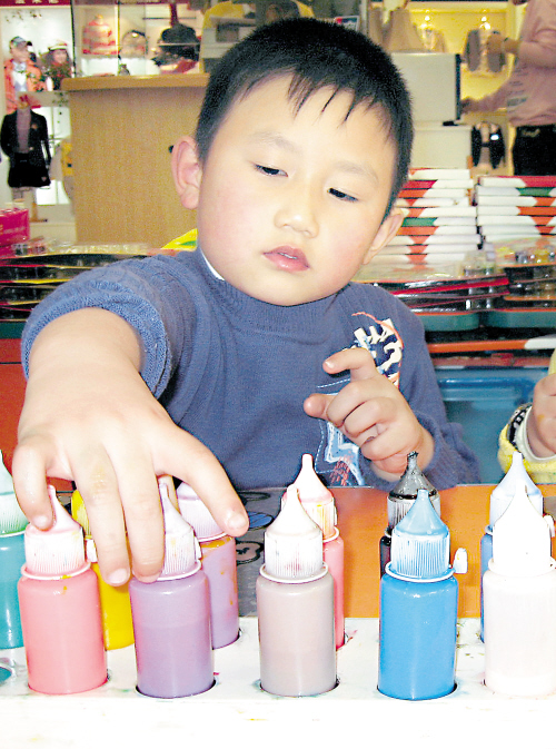 山东: 减负“新政”让孩子们欢度周末 3月9日,一位小朋友在济南一商场儿童区学习画沙画。从今年春季开始,山东省实施素质教育“新政”,规范学校课程设置、课时、学生作息时间和作业量,让以往在家埋头做作业的孩子走出家门轻松度周末。 新华社记者 范长国 摄