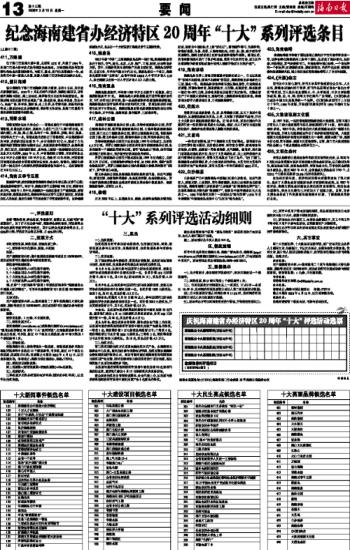 纪念海南建省办经济特区20周年“十大”系列评选条目