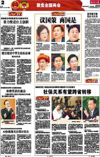 海南日报 聚焦全国两会 002 2008-03-101 2008年03月10日 星期一