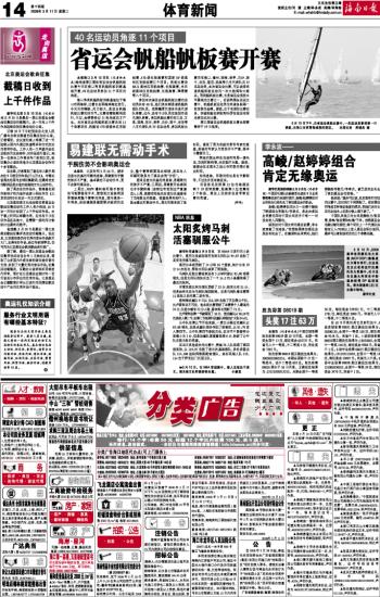 海南日报 体育新闻 014 2008-03-111 2008年03月11日 星期二