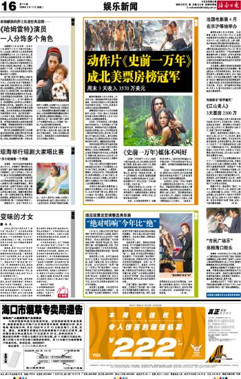 海南日报 娱乐新闻 016 2008-03-111 2008年03月11日 星期二