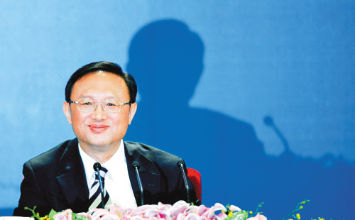 | 3月12日,全国人大十一届一次会议举行记者招待会,外交部长杨洁篪就我国对外政策和对外关系答记者问。 本报特派记者 宋国强 摄 |