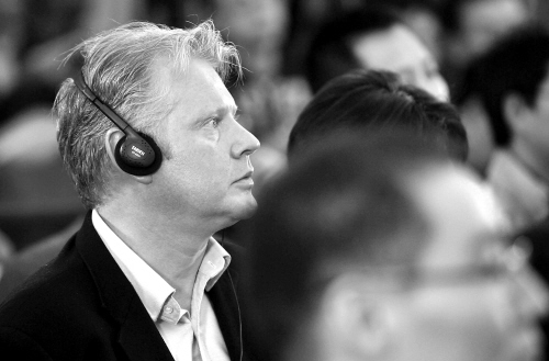 ↑ 3月12日,今年的记者会与以往不同的是,首次将发布会中的现场翻译改为同声传译,这样可以节省时间让记者拥有更多的提问机会。