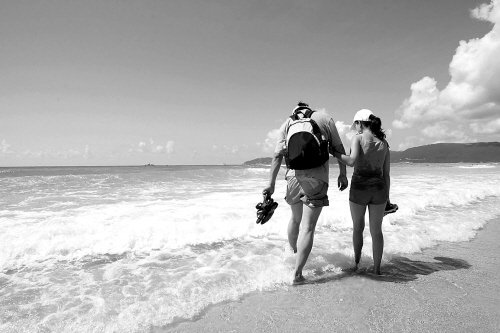 | ↑ 碧海蓝天亚龙湾。 本报记者 张杰 摄 |