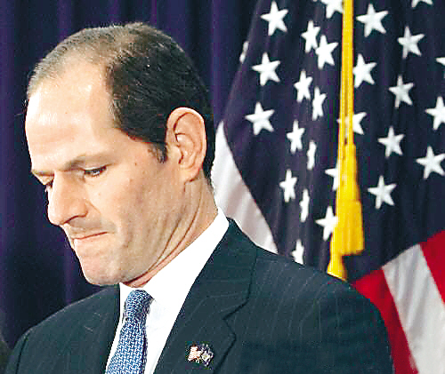 | 曾有“华尔街治安官”之称的纽约州州长埃利奥特·斯皮策一脸沮丧。 新华社发 |
