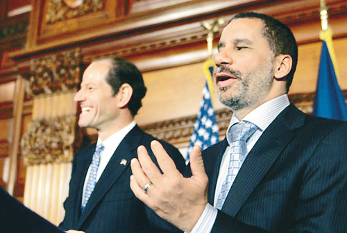纽约州黑盲人 副州长“转正” 美国纽约州现任副州长、民主党人戴维·帕特森(右)将于3月17日正式就任纽约州州长。届时,他将成为纽约州历史上首位黑人州长,同时也是首位失明州长。 新华社/法新