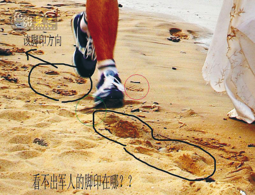 网友“bowling”在色影无忌网“摄影大家坛”中,对“三亚大福”提出的5个疑点予以解释:1.脚印,放大图中战士左脚的脚印很明显,右脚还未落地,当然没有脚印;2.脖子喉结方向不符,没有说服力,自己扭扭头试试就知道;3.看不出手臂和脚的PS痕迹;4.光线,拍婚纱经常使用外闪和柔光罩,就是这个效果;5.透视效果是这张照片看着最别扭的地方,但也可能是那对新人身高不高原因造成的。