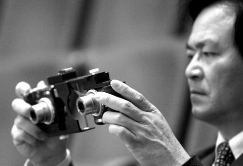 “立体相机” 这位政协委员的相机是用两台普通数码相机改装而成的,拍摄时两台相机同时记录图像,后期经电脑处理后就可产生一张三维立体图像。