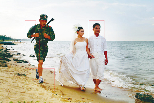 上图:军人肩膀边缘线PS的痕迹 右图:沙滩上找不到军人的脚印 右上图:获奖照片《和平年代》全貌 本报海口3月13日讯 (记者郑彤 张谯星)全国摄影大赛获奖作品《和平年代》是否属PS合成一事,连日来引发热议。新华网、CCTV、搜狐、新浪、网易等门户网站以及色影无忌、迪派影像等专业网站,纷纷对此事予以关注。 3月9日,“洞天杯·蓝丝带”海洋保护全国摄影大赛在南山大小洞天景区举行颁奖仪式,并举办摄影展,《和平年代》荣获专业组二等奖并参与展出。 昨日,网友“三亚大福”在南海网“阳光岛社区”发表声明,称受三亚众影友委托,发表对《和平年代》的看法,举出5处疑点:1.图片中找不出武警战士的脚印;2.新郎面部方向和脖子喉结方向不符;3.武警战士左边手臂和腿部衣裤轮廓线有严重PS处理痕迹;4.武警战士脸部和脚部光线方向与新郎头部和脚部光线方向不符;5.从海平面与武警战士的位置来看,拍摄武警战士时应是俯拍,而那对新人的拍摄角度应是平拍,从整个画面来看,战士和新人在透视上不相符。“三亚大福”认为,该作品系由两张新郎婚纱照和一张军人照共三张PS合成,照片最明显的缺陷在于没有军人的脚印。其他缺陷在PHOTOSHOP CS2中将原图放大至300%以上后,从军人的轮廓线中可以明显发现其PS痕迹。 网友“bowling”在色影无忌网“摄影大家坛”中,对“三亚大福”提出的5个疑点予以解释:1.脚印,放大图中战士左脚的脚印很明显,右脚还未落地,当然没有脚印;2.脖子喉结方向不符,没有说服力,自己扭扭头试试就知道;3.看不出手臂和脚的PS痕迹;4.光线,拍婚纱经常使用外闪和柔光罩,就是这个效果;5.透视效果是这张照片看着最别扭的地方,但也可能是那对新人身高不高原因造成的。 截至今日下午4时,色影无忌网“摄影大家坛”中,《海洋保护全国摄影大赛专业组二等奖获奖作品<和平年代>PS造假?》一帖的点击率已达6232次,跟帖有192个,“真实”与“造假”的声音此起彼伏。网友“水木之”称,照片最明显的疑点是透视关系,认为武警战士是广角俯拍的,头大脚小;而新郎新娘则是仰拍的。网友“felixsmile”对战士的鞋和脚印进行“研究”后认为,战士左脚没在沙地上留下痕迹不太可能,并称战士身后的脚印是01式武警作训鞋留下的,而战士穿的却是龙牌运动鞋,这种鞋的横底纹脚印很怪异地出现在战士左侧。更多网友则认为,是质疑者判断错误,还是作者确实作假,是个并不复杂的技术问题,完全可以通过分析原始文件予以确认。 “三亚大福”称,在3月8日三亚市摄影家协会联谊会上,照片作者并没有拿出RAW(未经处理的原始文件)。今天,记者就“三亚大福”的质疑声明采访了三亚市摄影家协会有关负责人,该负责人称,不便发表意见和评论。 “这幅作品是否经过PS合成,我们还不能妄下结论。毕竟在评奖时,评委们要在1个多小时的时间里完成评奖过程,一般会更注重作品的构图、色彩、思想性和感染力。”海南省摄影家协会秘书长吴乾阳今天就此事接受记者采访时称,“3月8日,我们专门在三亚组织专家对这幅作品进行了再次鉴定,从作者的拍摄过程、作品的原始数据来分析,目前还没有发现这幅作品有合成的痕迹。” 有网友提议,将照片送交两大权威机构———华夏物证鉴定中心和中国摄影家协会数码影像鉴定中心进行鉴定,事件应该就会水落石出。 长沙理工大学党委副书记李明教授在看了照片后则不无担心:“我们一方面要鼓励质疑精神,让失信者受到谴责;但另一方面又要慎防质疑成风,呼唤互相信任。希望能早日得知事情真相。” 本版照片由本报资料库提供 |