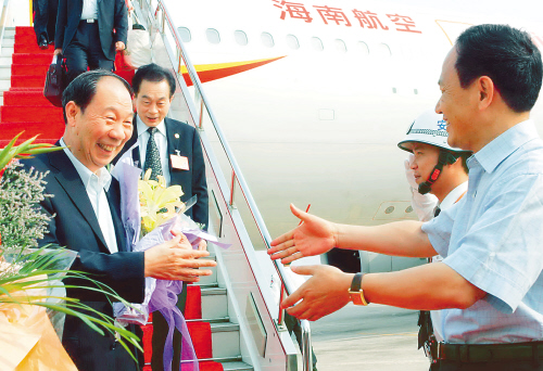 省领导周文彰、王法仁、李国梁、张海国到海口美兰国际机场迎接。