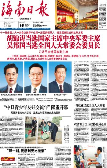 胡锦涛当选国家主席中央军委主席吴邦国当选全国人大常委会委员长