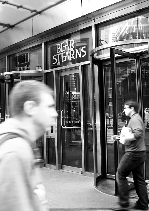 | 3月16日,行人从位于美国纽约曼哈顿的贝尔斯登公司门前走过。