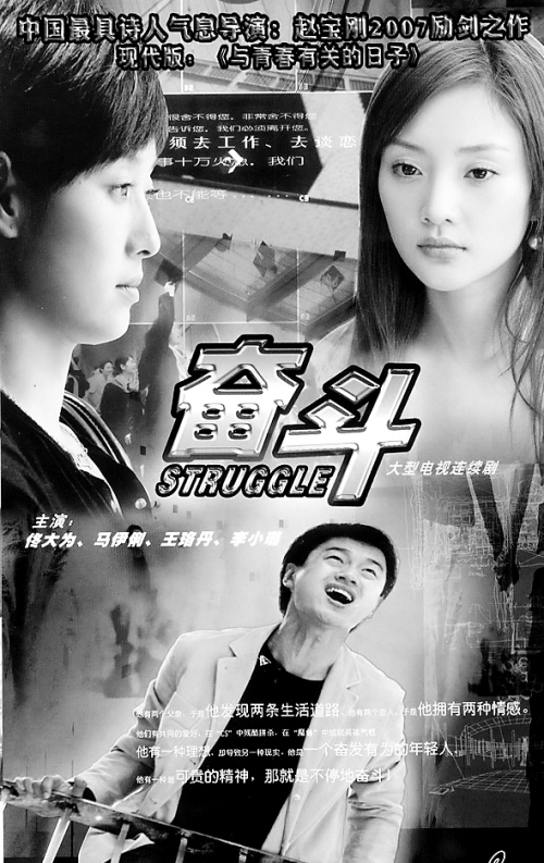 | 电视剧《奋斗》尚在各电视台热播,《奋斗2》剧本的写作也已启动。《奋斗》编剧石康在博客上透露,相比于《奋斗》“进账”80万元稿酬,《奋斗2》已成功得到第一笔共计300万元的稿酬。图为《奋斗》海报。 |