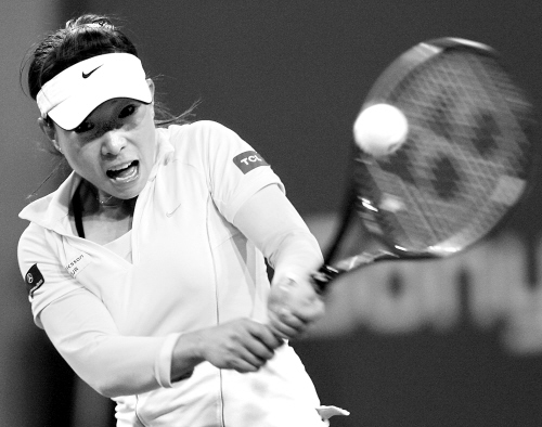 郑洁在美国印第安韦尔斯举行的太平洋寿险杯网球赛女单第三轮比赛中
