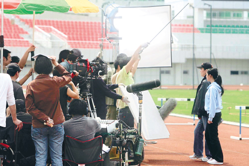 | 《扬帆启航》拍摄现场 本报记者陈德雄摄 |