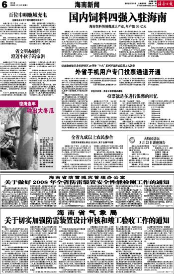 海南日报 海南新闻 006 2008-03-181 2008年03月18日 星期二