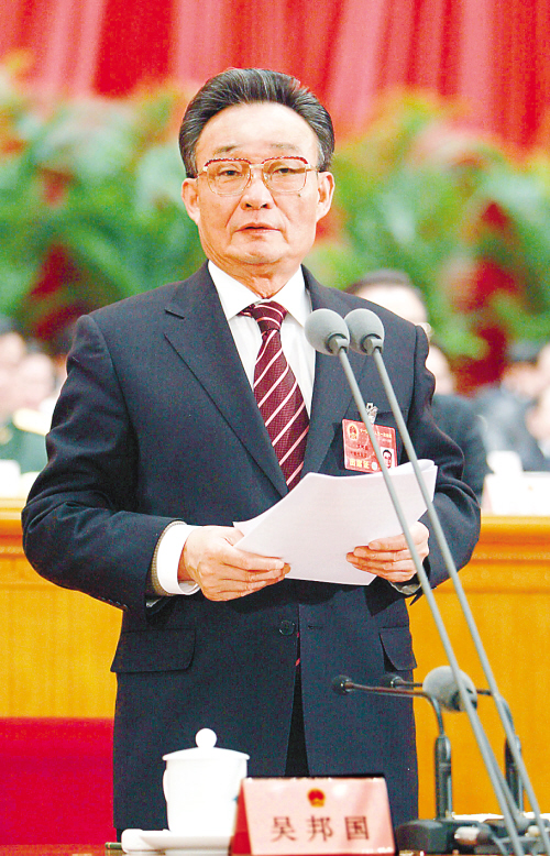 | 吴邦国委员长讲话。 新华社记者 鞠鹏 摄 |
