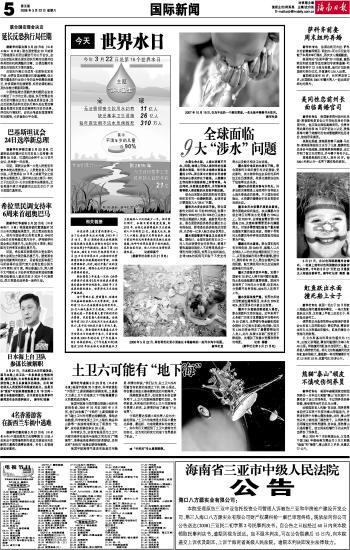 海南日报 国际新闻 005 2008-03-221 2008年03月22日 星期六