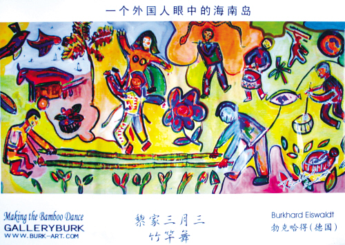 | 勃克·哈得的抽象画作品《黎家三月三竹竿舞》。 本报记者 苏晓杰 摄 |