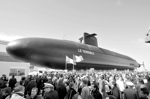 据新华社巴黎3月21日电 (记者李学梅)法国新一代战略核潜艇“可畏号”的下水仪式21日在西北部军港瑟堡举行(上图)。法国总统萨科齐出席了下水仪式并阐述了法国未来的核威慑政策。 这艘全新的核潜艇是法国建造的第四艘也是最后一艘“凯旋”级战略核潜艇,它全长138米,宽12.5米,水下最高航速25节,可下潜到超过300米深的水域,能够装备16枚可携带核弹头的最新M51型弹道导弹,导弹射程可达8000公里。“可畏号”预计将于2010年正式服役。