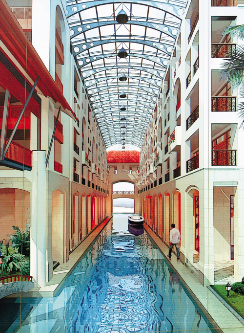 作为一个新开发的度假区,进驻酒店的风格倍受关注。海棠湾酒店在设计上与亚龙湾酒店有什么区别?以开维丽笙酒店为例,其总设计师圣地亚哥NOYPRY有限公司的NOY先生,就向记者描述了酒店的另类风格:绝大部分客房均有水景,环行的运河水道四通八达。从大堂办好手续后,客人可选择乘船出入客房,运河穿过每个客房组团的中庭,船只可直接驶入海鲜餐厅。在酒店,游客可以步行、乘船、或乘高尔夫球车到达酒店任何区域。