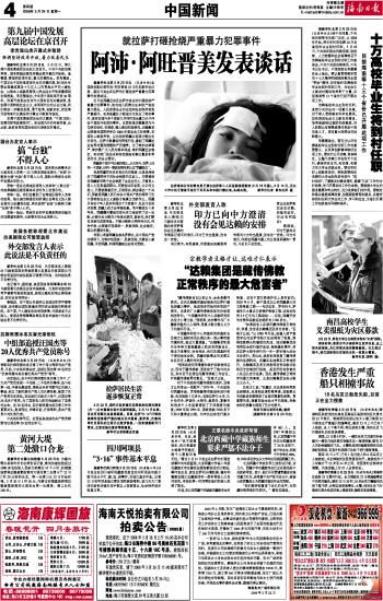 海南日报 中国新闻 004 2008-03-241 2008年03月24日 星期一