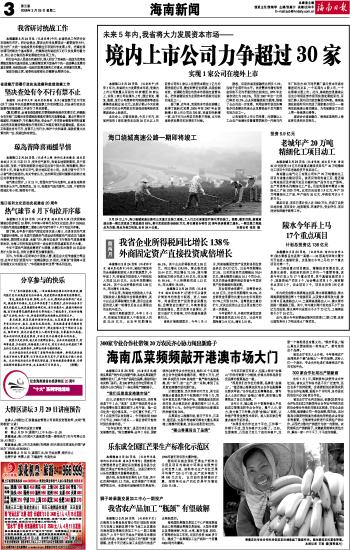 本报抱由3月24日电 (记者邵长春 特约记者孙体雄 通讯员邢增智)国家标准化管理委员会已确定乐东黎族自治县为全国红芒果生产标准化示范区。这是记者昨天从乐东质量技术监督局获悉的。 据介绍,乐东现有芒果约6.9万亩,其中红芒果种植约2.2万亩。红芒果原产于美国佛罗里达州,系欧美市场畅销的芒果品种,1996年被引进乐东大量种植。 据组织实施全国红芒果生产标准化示范区项目的海南中环果业有限责任公司负责人说,按标准化生产的红芒果平均增产250公斤/亩,生产成本每亩下降100元左右, 以目前市场销售价计算,按标准化生产的红芒果平均增收1350元/亩。 |
