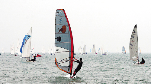 3月24日下午1时,2008年全国帆船冠军赛在海南海口西秀海滩海域开赛。 本次比赛共有来自海南、青岛、浙江、解放军和山东等13支代表队的100多名选手参加,其中在十运会男子帆船470级夺得冠军的海南选手邓道坤、 王伟东代表海南队参加帆船470级的冠军角逐,帆船项目共设男女470级、女子激光雷迪尔级、男子激光级和男子芬兰人级。该冠军赛28日结束,为期5天。 本报记者 苏晓杰 摄