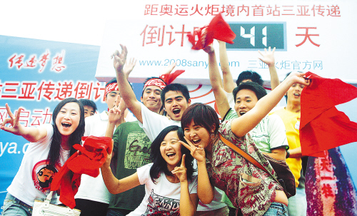 | ← 三月二十四日下午,三亚市在海月广场举行奥运火炬中国境内首传三亚传递倒计时暨三亚火炬官方网站启动仪式,庆祝圣火采集圆满成功。 本报记者 张谯星/文 李英挺/摄 |