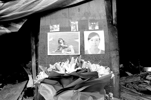 | 23日,悼念者在遇难少女的照片前摆放了鲜花。