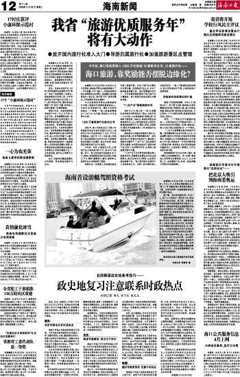 海南日报 012 2008-03-251 2008年03月25日 星期二