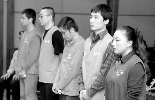 | 五被告人法庭受审。 本报记者 文刚 摄 |