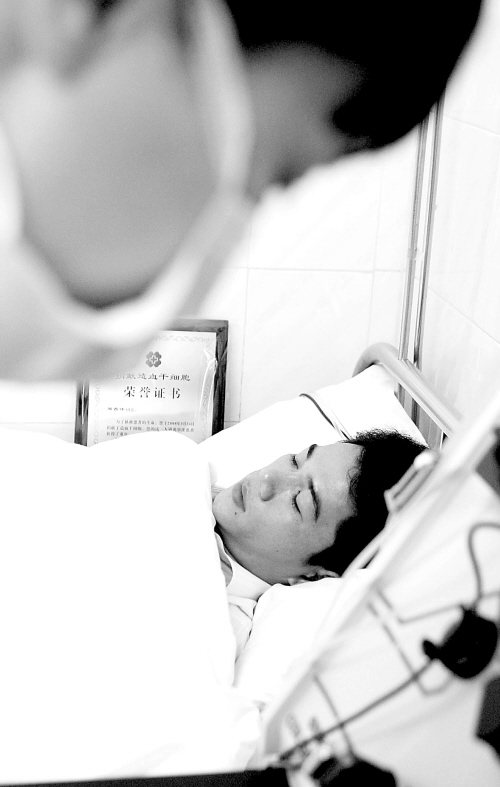 | 小周在省人民医院抽取造血干细胞,捐献给四川一位白血病患者。