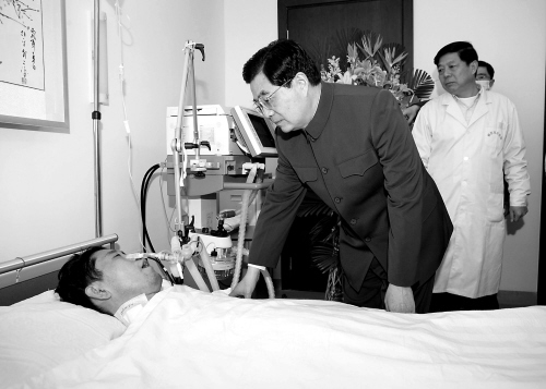 | 2月20日,中共中央总书记、国家主席、中央军委主席胡锦涛前往解放军总医院,看望了病危抢救中的方永刚。