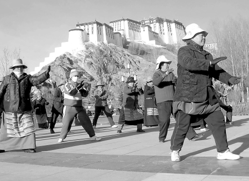 拉萨布达拉宫管理处处长强巴格桑说,布达拉宫已从26日起重新恢复对外开放。他说,拉萨发生“3·14”事件后,出于安全考虑,布达拉宫管理处决定从3月15日起暂停对外开放,一直持续到25日。 右图:随着局势的日趋稳定,在布达拉宫周围转经和晨练的市民逐渐增多。 新华社发
