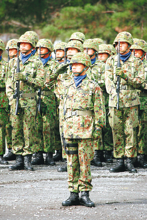 日本成立 中央快速反应连队 3月26日,在日本东京北部的宇都宫,中央快速反应连队士兵在成立仪式上接受检阅。当天,日本陆上自卫队新成立的中央快速反应连队首次公开亮相。该连队编制约700人,隶属于去年成立的中央快速反应部队,主要承担游击、反恐等特种作战任务。作为日本最精锐部队之一,中央快速反应连队将扮演日本海外行动“先遣队”的角色。 新华社记者 任正来 摄