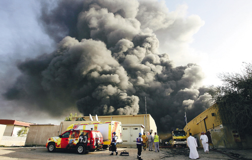 3月26日,在阿拉伯联合酋长国迪拜市工业区,滚滚黑烟从一处爆炸的烟花爆竹仓库冒出。据一名官员说,当地时间7点,这个仓库忽然发生爆炸,到目前为止造成一人受伤。 新华社/法新