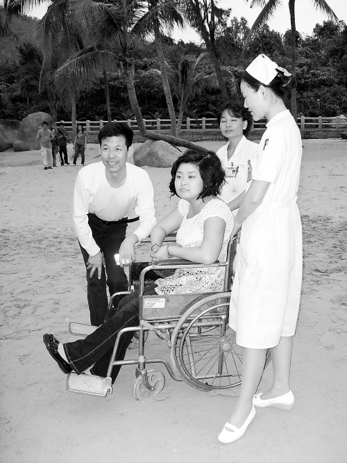 本报三亚3月27日电 (记者王红卫)今年1月,一场百年一遇的罕见暴雪席卷了包括古城西安在内的许多城市,西安一个与死神抗争3年的女孩“蓓蓓”的名字和围绕着亲情、爱情、友情、以及人间大爱的话题,传遍了大江南北。今天,这个感动全国的23岁西安女孩,由妈妈、男友和好心人陪同来到三亚,圆自己看海的梦。