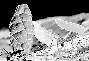 | 切叶蚁正在搬运树叶 (来源:北京科技报)
