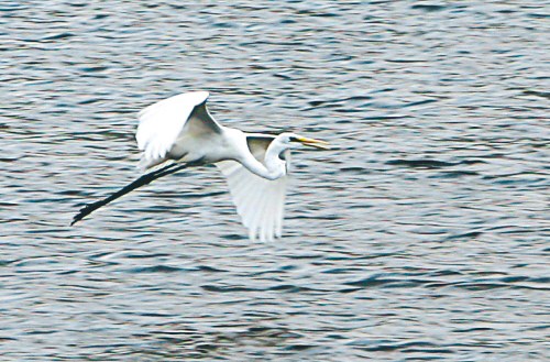 ←白鹭公园里飞翔的鹭鸟。